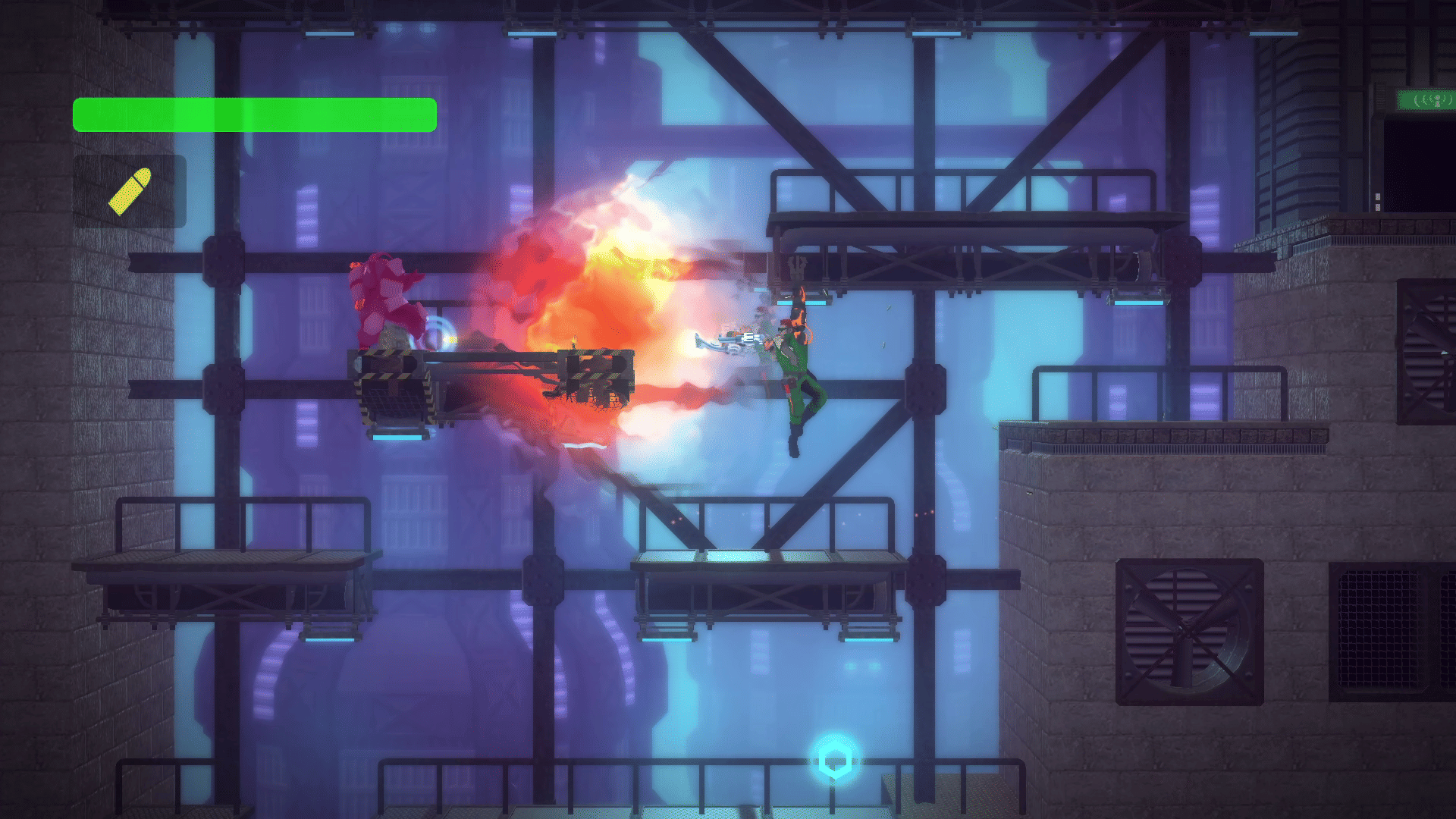 Bionic Rearmed 2 does away with the grid-based level map from the previous 2D Bionic Commando and goes with a more linear level-based map. As you progress through the game you are given new weapons, some of which you can use in previous areas to collect hidden weapons and upgrades that were located in areas previously inaccessible. Some levels have moments where you can use a sniper and a helicopter to clear out an area. This idea was kind of introduced in Elite Forces with the Sniper min-game, but with more of an impact on a level and can be used to clear out enemies, obstacles and unblock different paths to collect upgrades. I will give the game some credit, after playing what were essentially the same 4 games back to back, the semi-open endedness of the levels felt like a breath of fresh air.