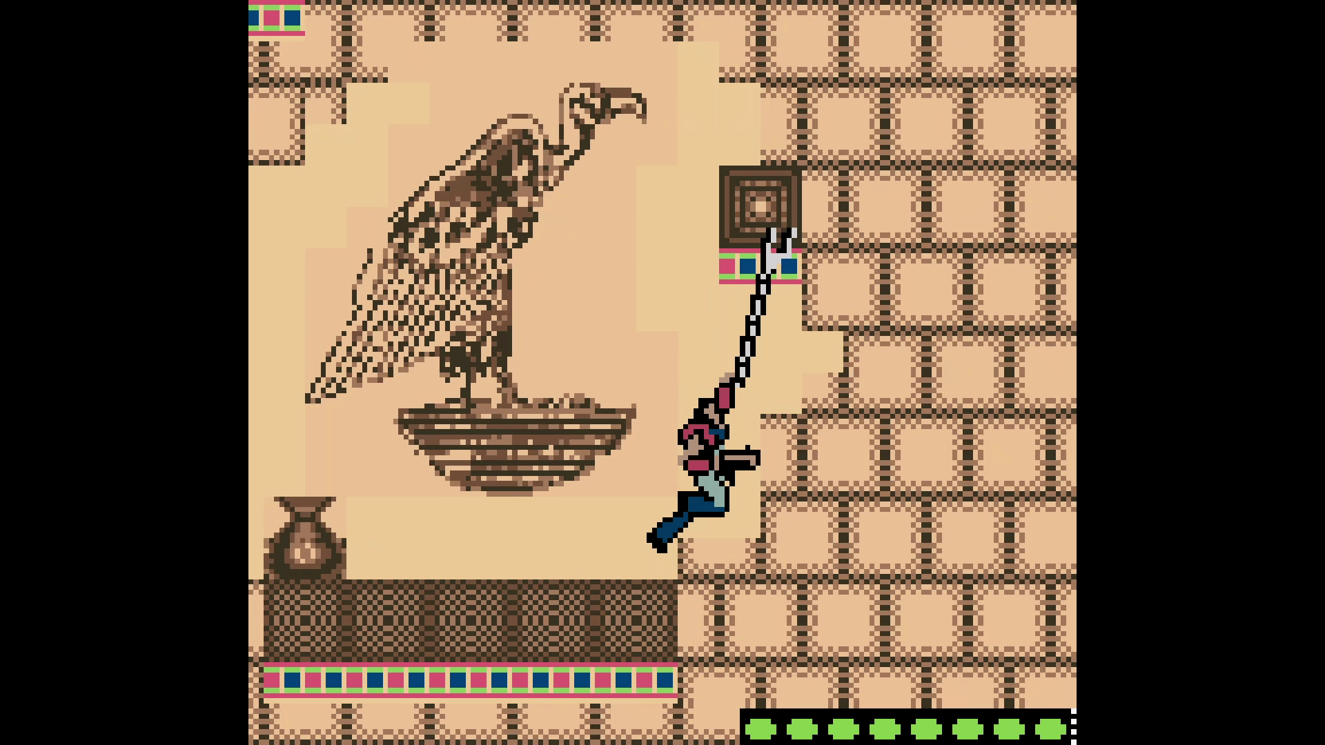 The game takes full advantage of the GameBoy Color almost to a fault. The character animations are smooth, but the sprites lack any kind of detail. While I appreciated the detailed environments some of the levels had, there were more than a few occasions where platforms and objects you could interact with were very hard to see due to them blending into the background. Added to the fact that the camera feels just a bit too zoomed in, leading to some levels being hard to navigate and many blind jumps that resulted in some unfair deaths. You are able to see your surroundings by holding up or down on the d-pad, but that isn’t much help when you’re in the middle of swinging and it isn’t visibly clear where exactly you’re supposed to swing next. I understand that the Game Boy Color screen has limited real estate, but this wasn’t an issue in the Game Boy game and if I was having this problem playing on a 32 inch monitor, I can only imagine what the experience must have been like playing on original hardware.