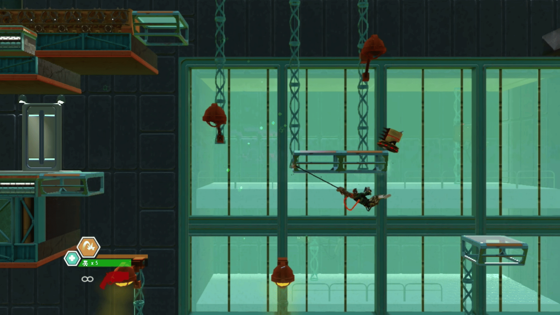The most controversial addition to the game was the introduction of “Bionic Legs”, which gives the player the ability to jump. The levels are still designed with hook only runs in mind and even have “No Jumping” challenges, which kind of makes me wonder why they added jumping in the first place. I wouldn’t exactly call it a jump either, it’s more like a small hop that barely gets you off the ground. As I’m sure you can already tell I wasn’t particularly fond of this new addition. I guess it could be good as a handicap to help new players out in some situations, but it just comes off feeling like they were trying to fix something that was already perfected.
