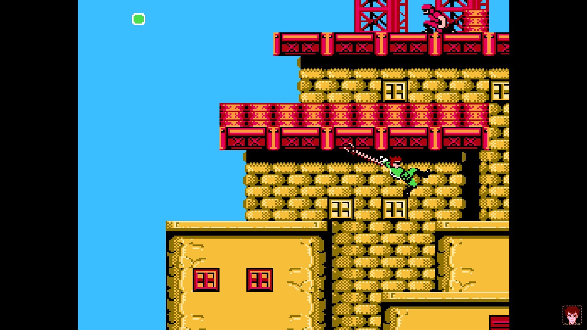 This is a complete reimagining of the arcade game, instead of the traditional level structure from arcade game, there is now a level map that lets you freely visit each area in any order you wish, although it's still a mostly linear experience aside from a few areas you will have to revisit when you have the proper equipment. The game starts the player off with no health and zero continues, but you can quickly upgrade your health by collecting exp that enemies drop, and continues are easily gained by attacking the enemy convoys you encounter on the map. The grappling hook has been improved and has a better sense of control. There is a bit of a learning curve when using the grappling hook at first and you may find yourself struggling to get past even the simplest obstacles, but it soon becomes second nature once you get a handle on things.