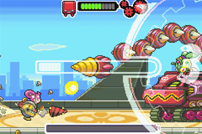 I do wish this game got a sequel because it really could’ve smoothed out some of my issues and given a second chance, make a truly masterful puzzle platformer. Instead, we got a very good game that has too many little flaws that bring it down for me. The bosses range from clever to frustrating with one in particular that stands out. You fight this giant robot in an arena where they are shooting bombs at you. The screen behind the fight has a timer and when it goes down to 0, the bomb blows up. Naturally, you have to get the time down when she is catching the bomb so she takes the damage. The way you shoot these back at her is catching them with your drill, charging it up and shooting them back. The problem I had with this is as you go, she starts shooting bombs that need to be caught by your drill spinning in the right direction. Up to this point, you learn that Red means Right ( R button ) and Blue means Left ( L Button ), yet this boss flips it! That makes the boss so much harder for me as the muscle memory I had developed up to this point gets thrown out the window for this one boss fight, which was frustrating.