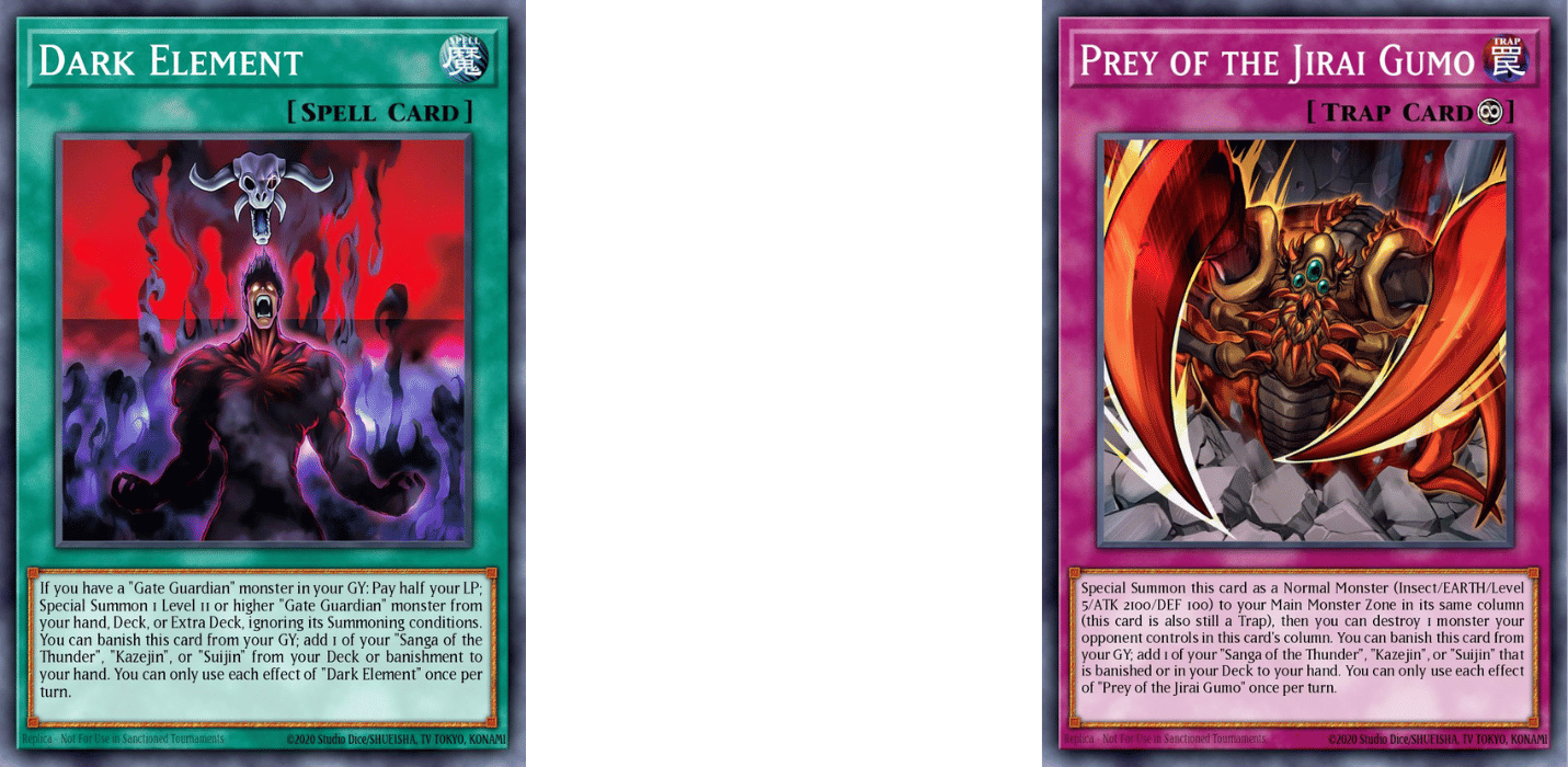 Gate Guardian of Thunder and Wind: Used for searching your deck for a spell or trap that mentions the big 3 (Sanga, Suijin, and Kazejin).