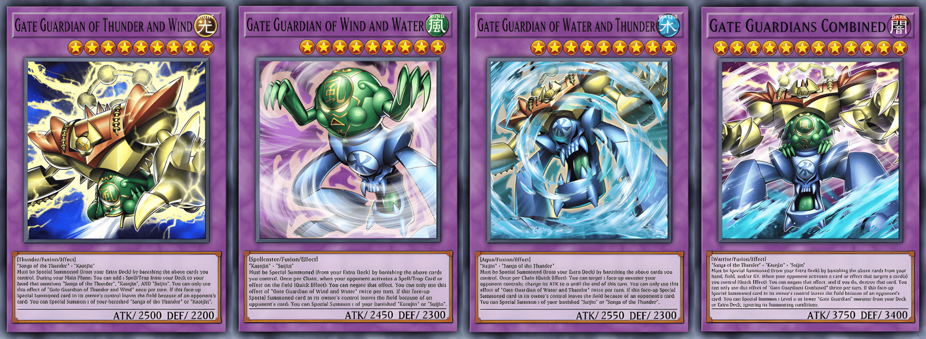 Rathan than relying on just one Gate Guardian, you now have 4 different versions, each with a different effect. Each one is a fusion monster that can be summoned by banishing the required material from your field. In the case of GG Combined, they can be banished from your hand, field, or graveyard.