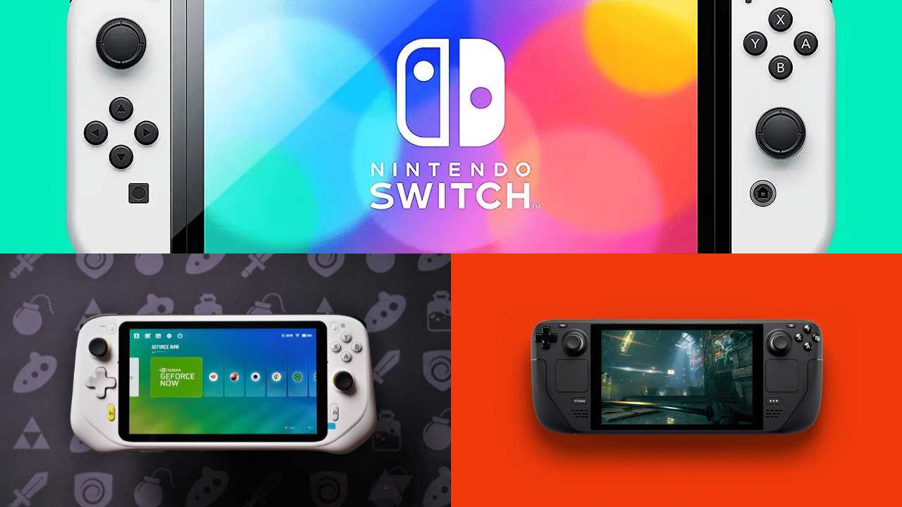 Top: Nintendo Switch, Bottom-left: Logitech G-Cloud, Bottom-right: Valve Steam Deck