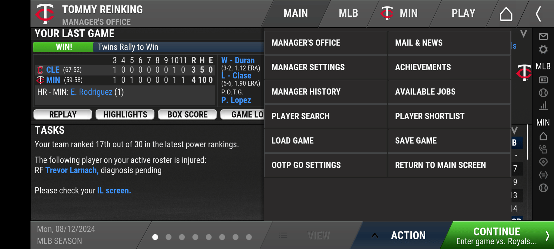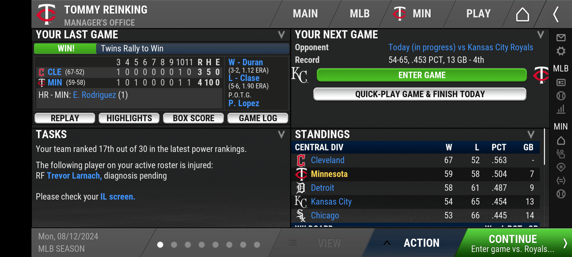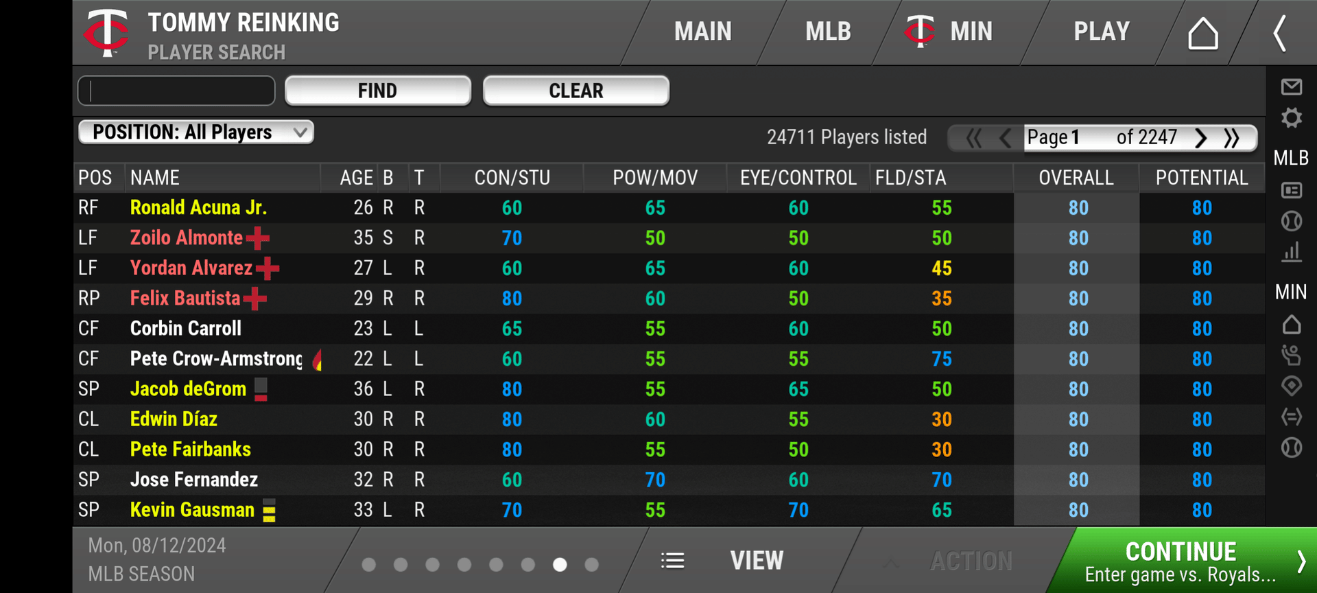 But I paid $10, which gives me access to the 2024, 2006, 1969, and 1949 seasons. I've been working my way through the 2024 season as the GM of the Minnesota Twins.