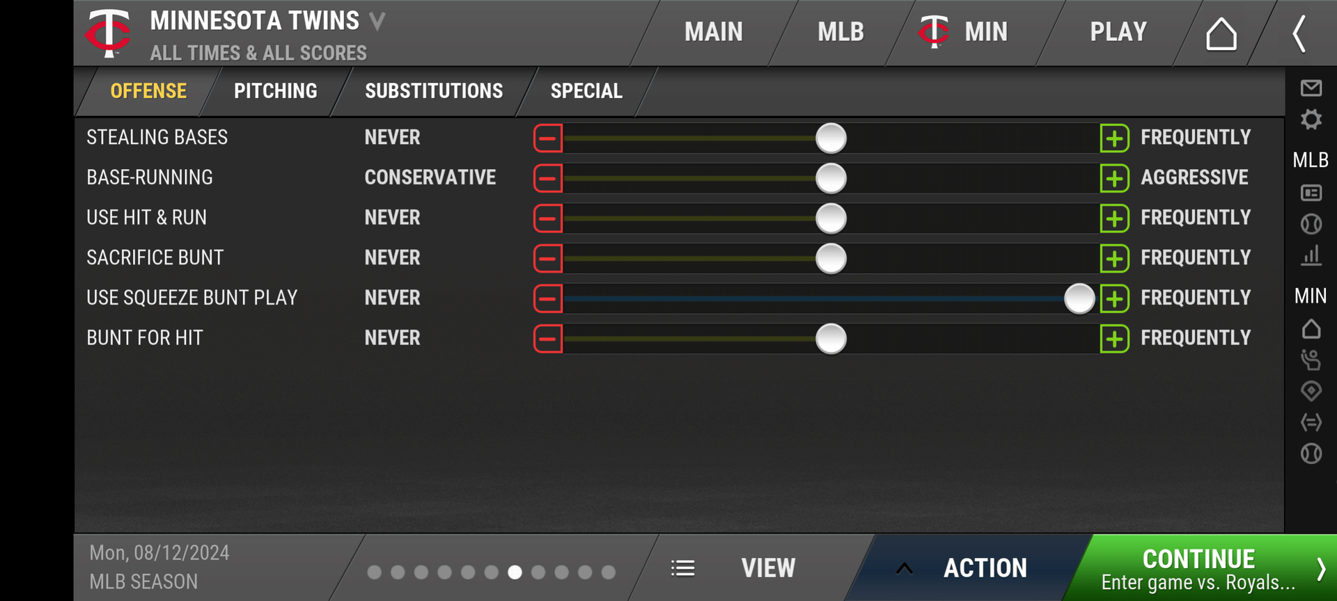 I can set the Use Squeeze Bunt Play slider to “Frequently.”