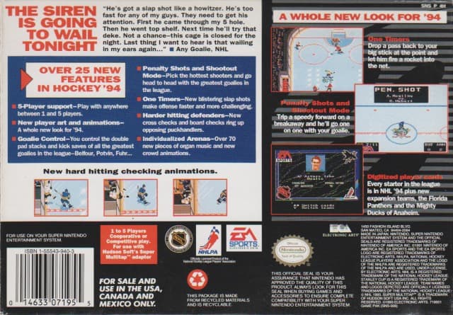 NHL 94 was special though. I vividly remember the new bold simplified name over the previous years convoluted NHLPA branding; bold black & white “NHL 94” was most of the front of the box and it was spectacular! Flipping the box over bestowed all sorts of new knowledge on me: