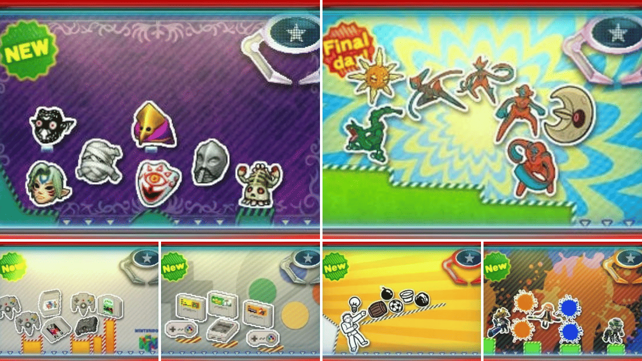 Then there's the Nintedo Badge Arcade, run by none other than Arcade Bunny (yes, that's his actual name). In Nintendo Badge Arcade, you would play claw machines with various layouts and backgrounds, each containing a certain theme. You' have Pokemon, Kirby, Legend of Zelda, even Nintendo Switch badges. You had one to five free plays each day and could purchase additional plays via the eShop or by getting a certain number of badges in one play. The badges you collect could then be used to decorate your 3DS home screen, either by attaching them to folders or empty spaces in your home screen. There were badges for almost EVERY GAME on the 3DS—Mega Man, Monster Hunter, Warioware, Yo-Kai Watch, and even Fire Emblem. I always had a great time logging into this game once a day and seeing what awesome badges were available.