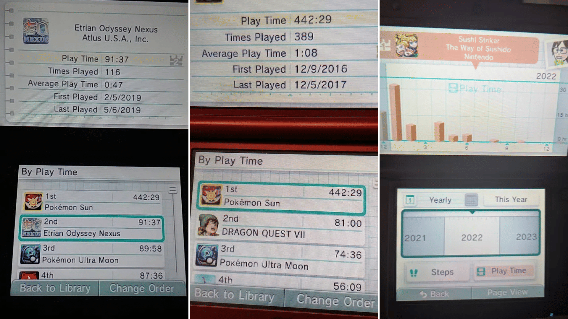 One of the most underappreciated pieces of software on the 3DS is the Activity Log. Not only does it track the amount of time that you've put into each game down to the very minute, but it also tracked how many steps you'd taken in a given day. Nintendo even went the extra mile and gave you graphs to track steps and game time either by the day, week, month, or year. You also had log that kept track of each game's play time, average play time, number of times played, and when you first and last played it. You could even sort games based on the number of hours played and see which games you've played more than others. Keep in mind, this app just comes with the system FOR FREE. This feels like something that you would pay $5 for in today's market.